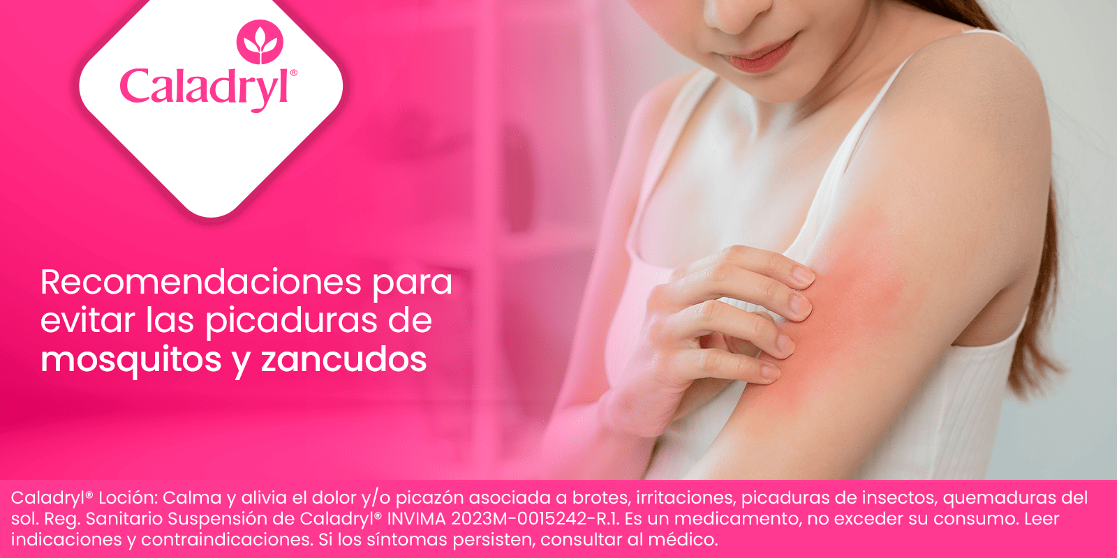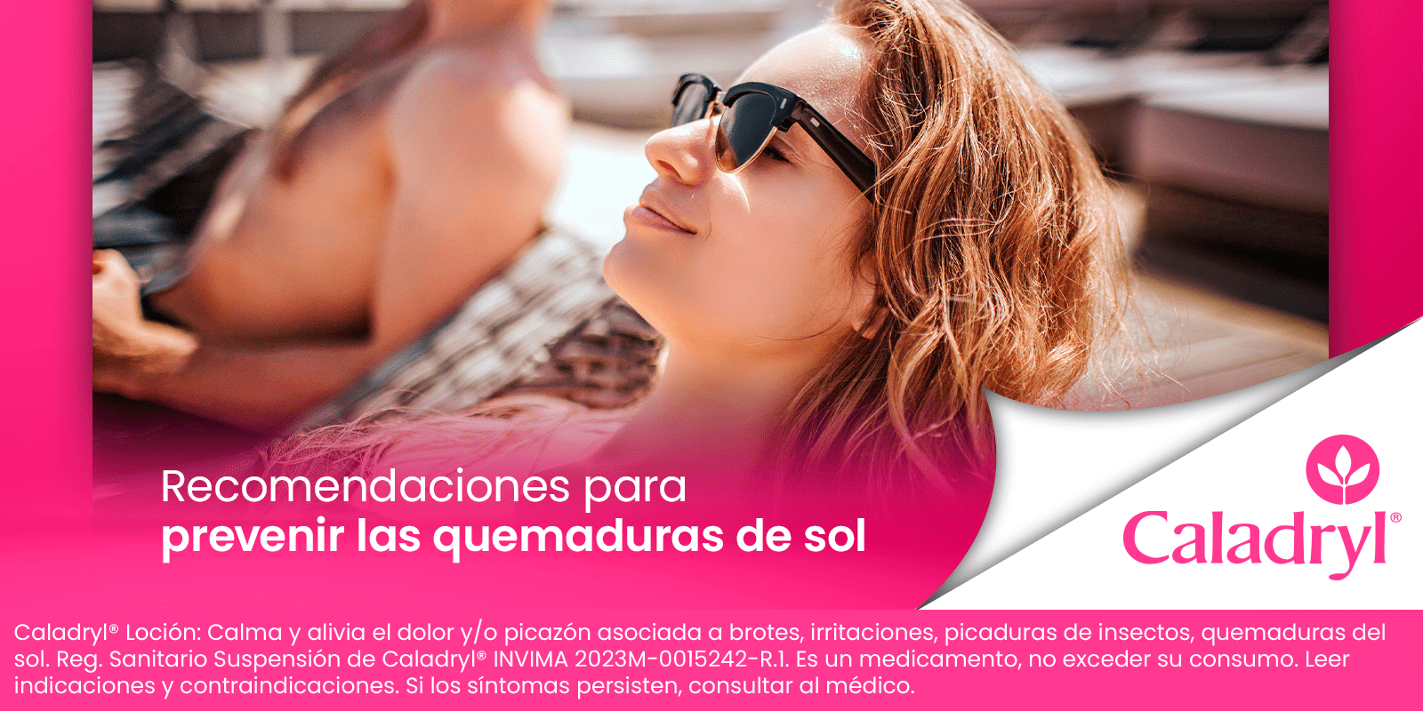 LOCION DE CALADRYL® : Calma y alivia el dolor y/o picazón asociada a brotes, irritaciones, picaduras de insectos, quemaduras del sol. Reg. Sanitario Loción de Caladryl INVIMA 2023M-0015242-R1. Caladryl Clear: Antipruriginoso Reg. Sanitario Caladryl Clear Loción INVIMA 2023M-0015113-R1. Es un medicamento. No exceder su consumo. Leer indicaciones y contraindicaciones. Si los síntomas persisten, consultar al médico. Se sugiere el uso de protector solar.